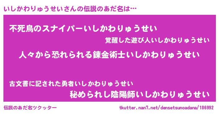| ヒーロー風カッコイイあだ名 | 『正義の使者いしかわりゅうせい』 |