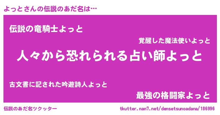 | ヘコむあだ名 | 『よっにゅー』『牛乳』『よっお』 |