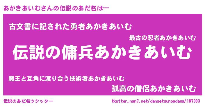 | ヒーロー風カッコイイあだ名 | 『スーパーアカキアイム』『炎刃騎士アカ』 |