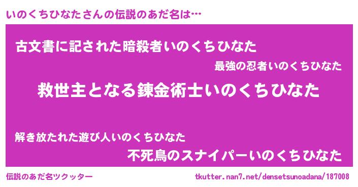 ヘコむあだ名 | 『いのくちひなた(遠い目)』『いのもー』 |