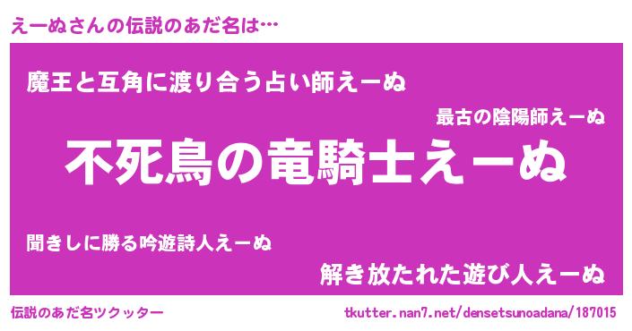 | 男性向けラノベタイトル風あだ名 | 『はたらくえーぬさま!』『えーぬの憂鬱』 |
