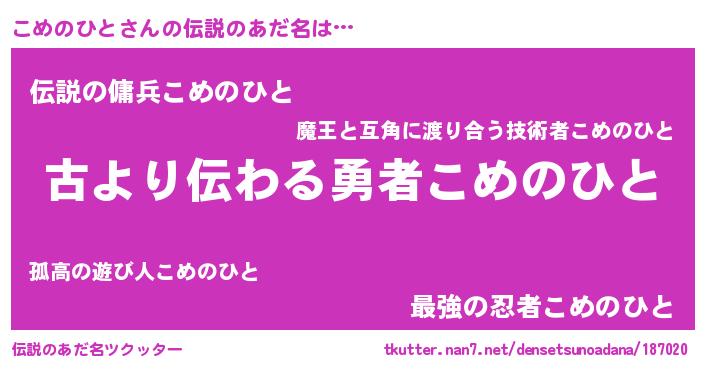 | 意味不明あだ名 | 『永久保存こめのひと』 |