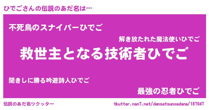 | 女子向けラノベタイトル風あだ名 | 『死神ひでごの再婚』『ひでご伯爵の花嫁』 |