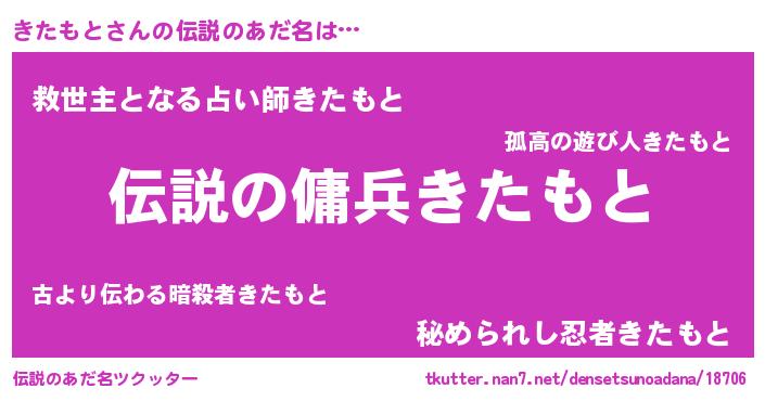 | 男性向けラノベタイトル風あだ名 | 『きたもとの憂鬱』 |