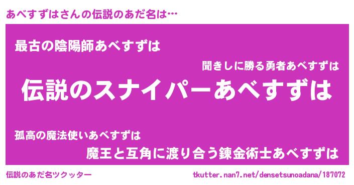 | 胡散臭い通販商品みたいなあだ名 | 『必ず成功する霊験あらたかなお札…その名も「あべすずは」』 |