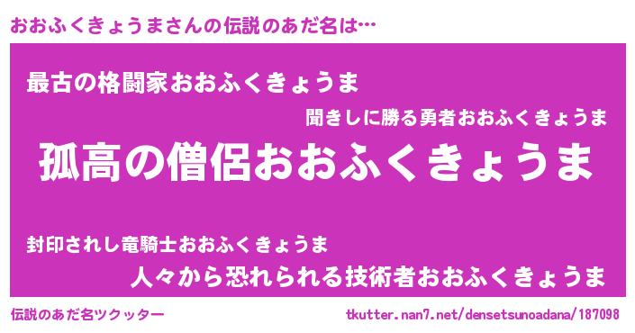 | 男性向けラノベタイトル風あだ名 | 『ダンジョンにおおふくきょうまを求めるのは間違っているだろうか』 |