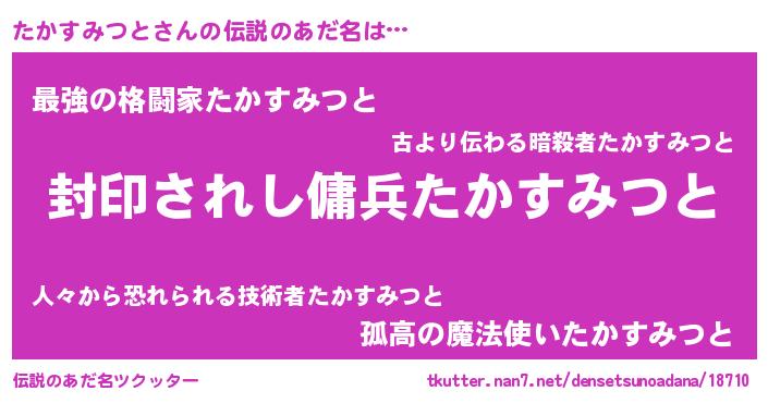 | 胡散臭い通販商品みたいなあだ名 | 『あなたにだけ特別に提供する限定10本のレアな日本酒…その名も「たかすみつと」』 |