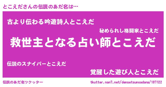 | ヒーロー風カッコイイあだ名 | 『慈愛の使者とこえだ』『ネオトコエダ』 |