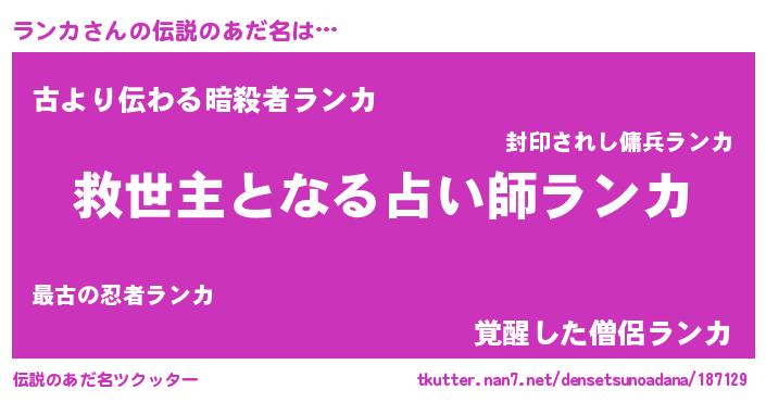 | ヒーロー風カッコイイあだ名 | 『慈愛の使者ランカ』『ネオランカ』 |