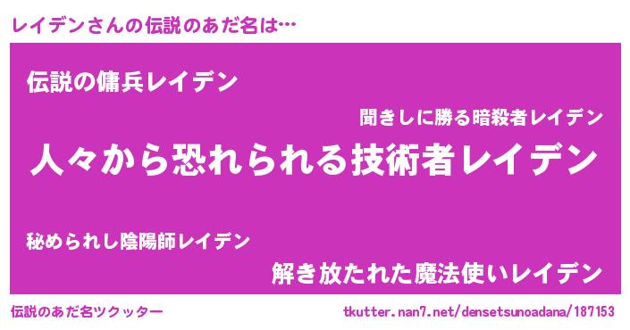 | ヒーロー風カッコイイあだ名 | 『仮面レイダー』『正義の使者レイデン』 |