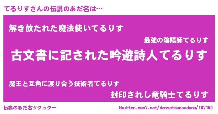 | ヒーロー風カッコイイあだ名 | 『ネオテルリス』『幻影騎士テル』 |