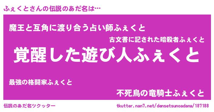 | 意味不明あだ名 | 『住所不定無職ふぇくと(84歳)』 |