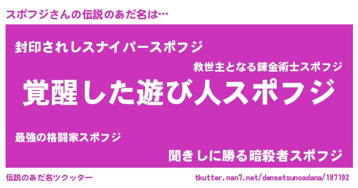 | 意味不明あだ名 | 『住所不定無職スポフジ(95歳)』 |