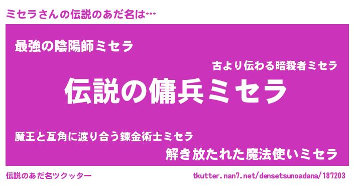 | ヒーロー風カッコイイあだ名 | 『ウルトラ戦士ミセラ』『スーパーミセラ』 |