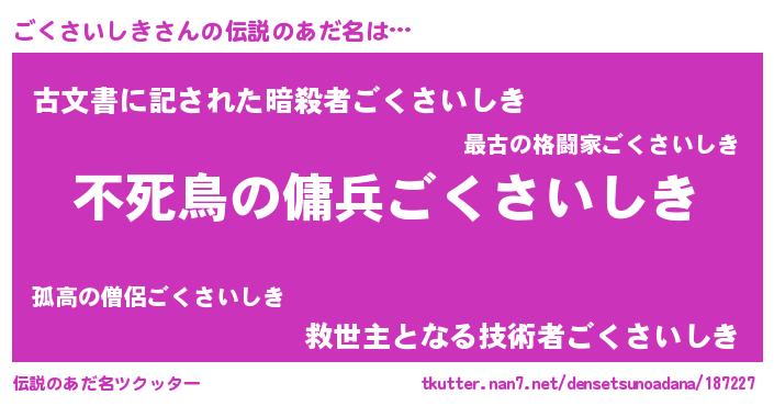 | ヒーロー風カッコイイあだ名 | 『ウルトラ戦士ゴクサイシキ』 |