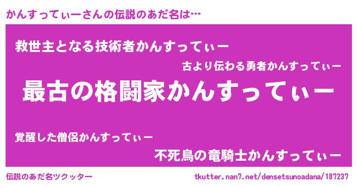 | 意味不明あだ名 | 『かんすってぃーフォーエバー』 |