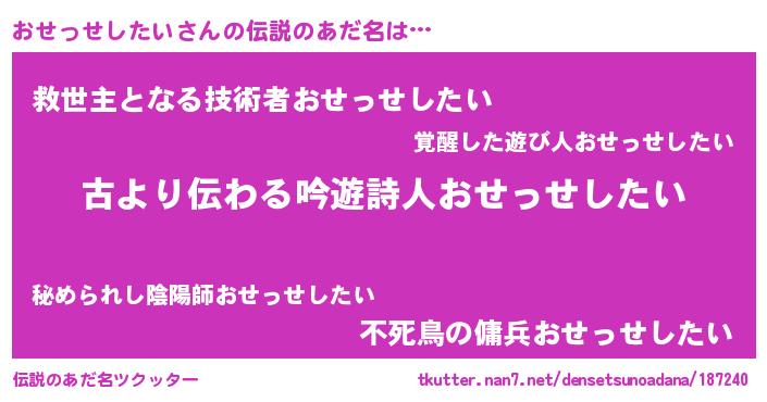 | ヒーロー風カッコイイあだ名 | 『ネオオセッセシタイ』『仮面オセダー』 |