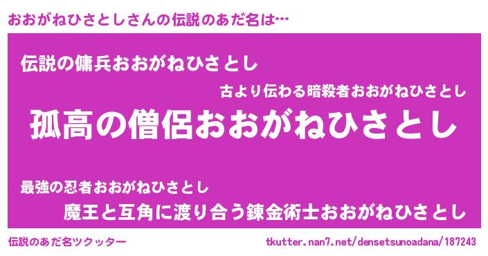 | 胡散臭い通販商品みたいなあだ名 | 『信頼と実績のネックレス…その名も「おおがねひさとし」』 |
