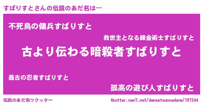 | ポケモン風あだ名 | 『ゼニスバ』『スバセウス』 |