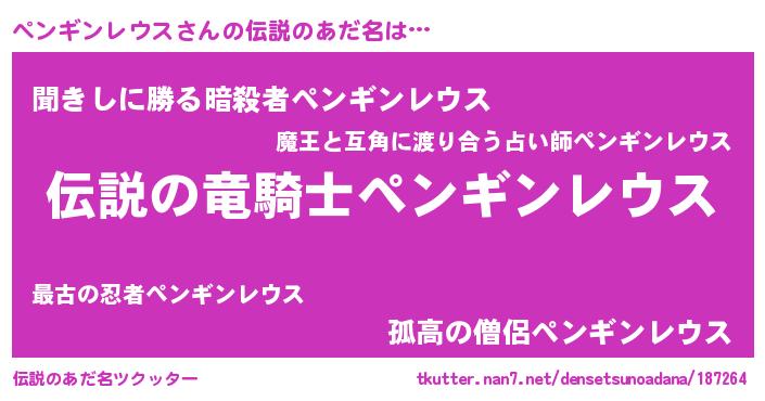 | ヒーロー風カッコイイあだ名 | 『超時空戦士ペンギンレウス』 |