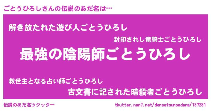 | ファンタジー風あだ名 | 『エターナルゴトウヒロシー』 |