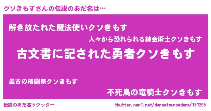 | 意味不明あだ名 | 『永久保存クソきもす』 |