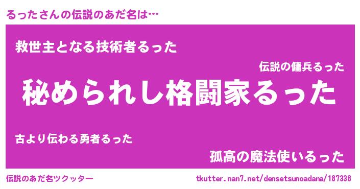 | ヒーロー風カッコイイあだ名 | 『仮面ルッダー』『ウルトラるったマン』 |