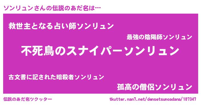 | 男性向けラノベタイトル風あだ名 | 『転生したらソンリュンだった件』 |