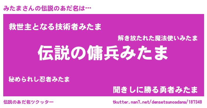 | ヒーロー風カッコイイあだ名 | 『ウルトラ戦士ミタマ』『仮面ミタダー』 |