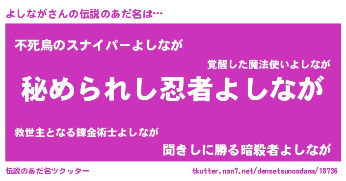 | ヒーロー風カッコイイあだ名 | 『仮面ヨシダー』『ウルトラよしながマン』 |