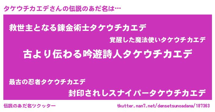| ヘコむあだ名 | 『タケウチカエデ(小並感)』『タケっふぃ~』 |