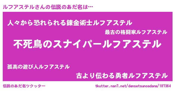 | 料理風あだ名 | 『ルフアステルごはん』 |