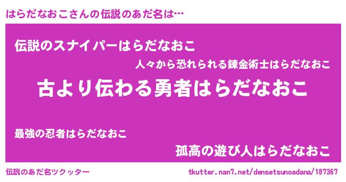 | 男性向けラノベタイトル風あだ名 | 『はらだなおこに滅ぼされるだけの簡単なお仕事です』 |