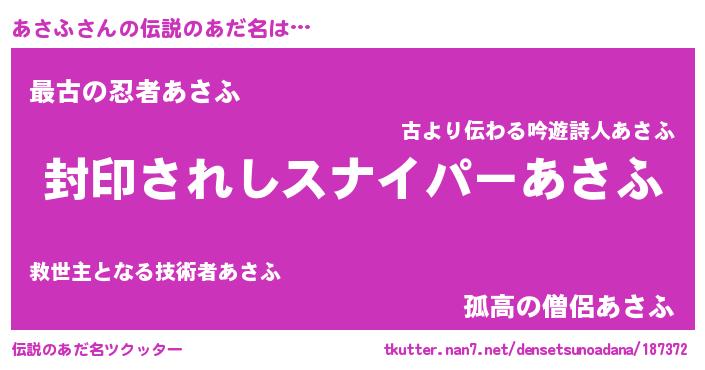 | 胡散臭い通販商品みたいなあだ名 | 『億万長者になれる霊験あらたかなお札…その名も「あさふ」』 |