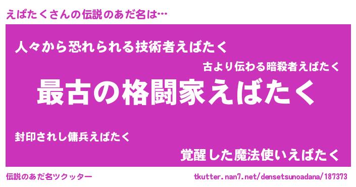 | ヒーロー風カッコイイあだ名 | 『ウルトラえばたくマン』『仮面エバダー』 |