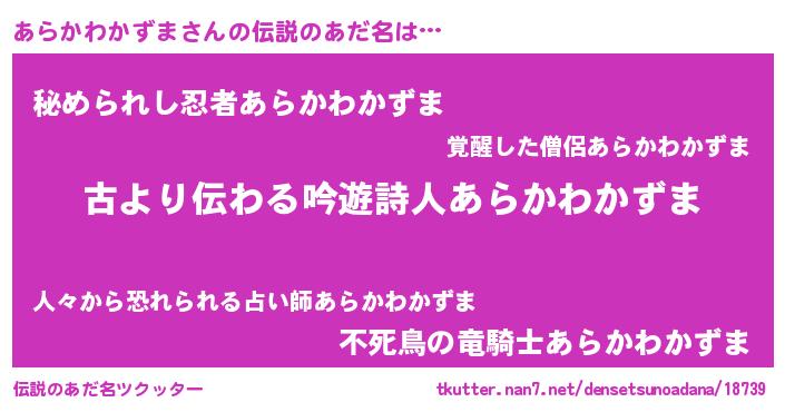 | 胡散臭い通販商品みたいなあだ名 | 『来世でも幸せになれる招き猫…その名も「あらかわかずま」』 |