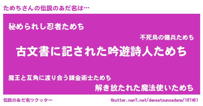 | 意味不明あだ名 | 『住所不定無職ためち(12歳)』『自称ためち』 |