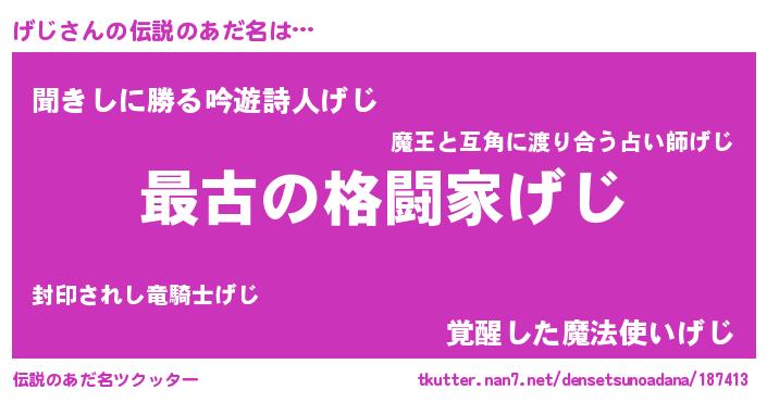 | 意味不明あだ名 | 『自称げじ』『げじフォーエバー』 |