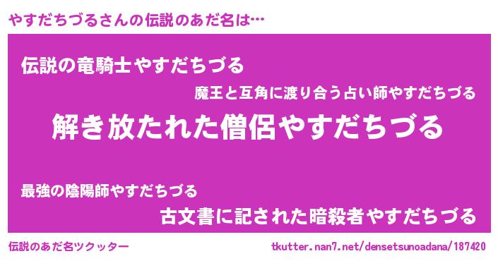 | 意味不明あだ名 | 『住所不定無職やすだちづる(65歳)』 |