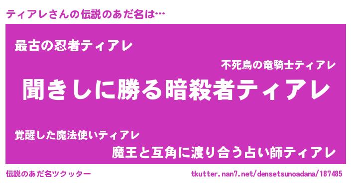| 意味不明あだ名 | 『永久保存ティアレ』 |