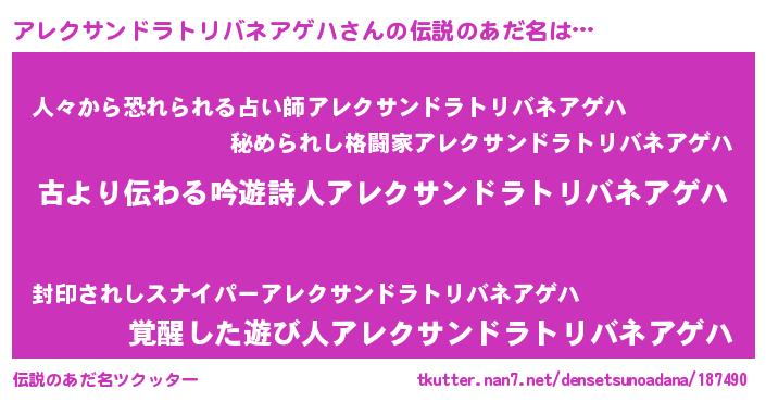 可愛いあだ名 | 『アレクサンドラトリバネアゲハママ』 |