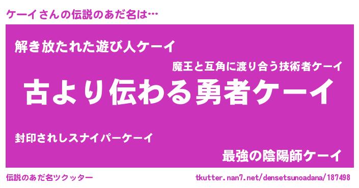 | ヒーロー風カッコイイあだ名 | 『ネオケーイ』『最強戦士ケーイ』 |