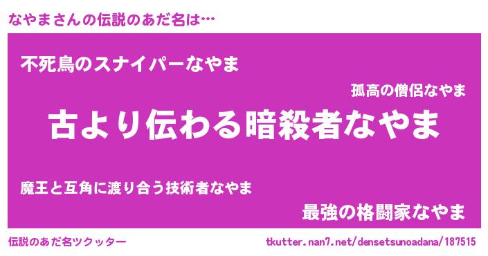 | 胡散臭い通販商品みたいなあだ名 | 『来世でも幸せになれる健康食品…その名も「なやま」』 |