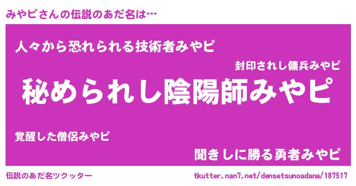 | ポケモン風あだ名 | 『ミヤキング』『メロミッヤ』 |