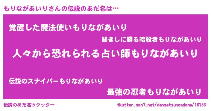 | ヒーロー風カッコイイあだ名 | 『正義の使者もりながあいり』 |