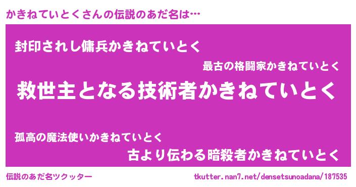 | ヒーロー風カッコイイあだ名 | 『慈愛の使者かきねていとく』 |