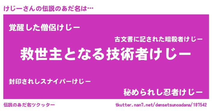 | ヒーロー風カッコイイあだ名 | 『最強戦士ケジー』『天空の使者けじー』 |