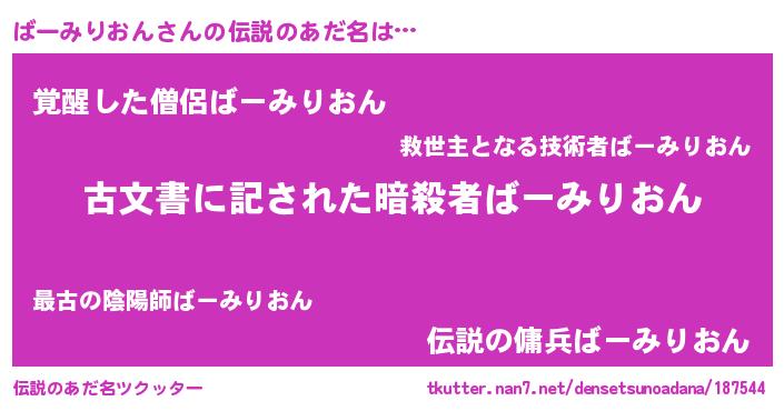 | 意味不明あだ名 | 『住所不定無職ばーみりおん(14歳)』 |