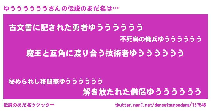 | ヒーロー風カッコイイあだ名 | 『友情の使者ゆうううううう』 |
