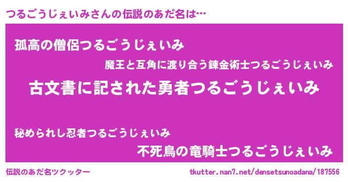 | 意味不明あだ名 | 『永久保存つるごうじぇいみ』 |